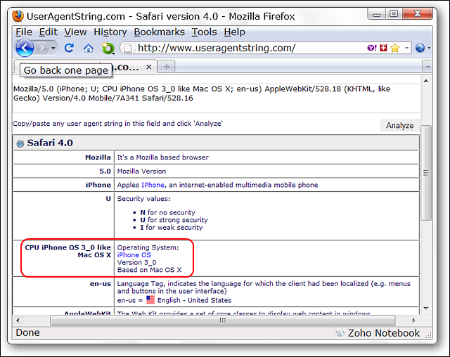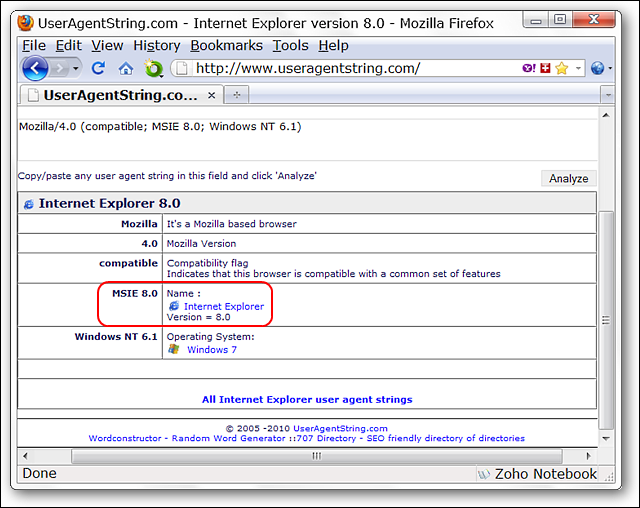 Überprüfen Sie die User Agent-Zeichenfolge für Ihren Browser