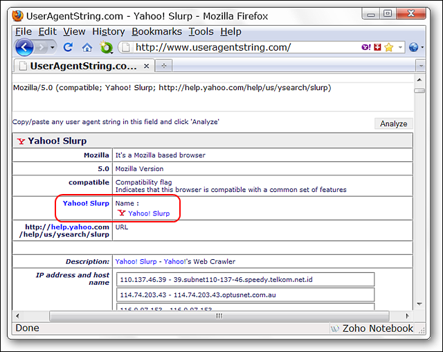 Als nächstes wählten wir die Yahoo! Slurp-Suchroboter… wieder ein perfektes Ergebnis.