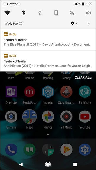 Vor kurzem hat die IMDB-App damit begonnen, Benachrichtigungen für „Featured Trailers“ zu versenden. Soweit ich es mir vorstellen kann, bezahlt die Produktionsfirma hier IMDB, um einen Link zum Trailer an eine Menge Leute zu senden, um ihn zu promoten. Wenn IMDB nicht bezahlt wird, ärgern sie ihre Fans einfach ohne Grund. Aus welchem ​​Grund auch immer, hier erfahren Sie, wie Sie diese Benachrichtigungen deaktivieren.